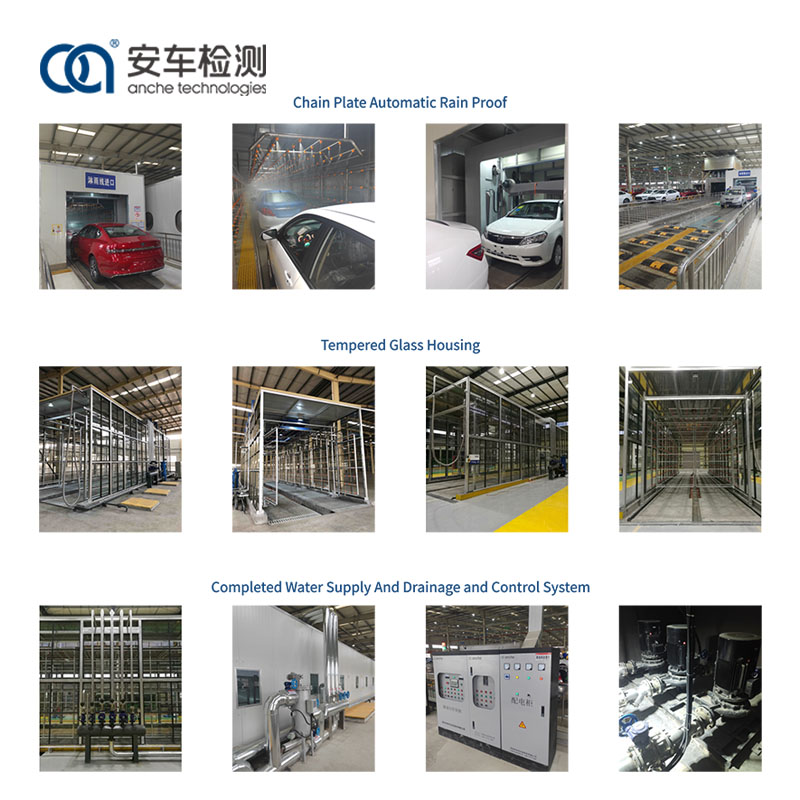 Srpski језик Anche ACLY-P (yo‘lovchi avtomobili) C (tijorat avtomobili) T (poyezd) yomg‘irdan himoya qiluvchi avtomatik sinov tizimi Anche tomonidan mustaqil ravishda ishlab chiqilgan va ishlab chiqarilgan uskunadir. Yomg'irdan himoya qiluvchi turli xil avtomobil modellarining talabiga ko'ra, u bir necha yo'nalishda kontur purkashini amalga oshiradi, chastota konvertori va suv ajratgich orqali real vaqtda yomg'ir intensivligini sozlaydi, shuningdek, zanjirli konveyer tasmasi, lift, va avtomatik fen mashinasi yomg'irga chidamliligi mosligini va aniqlash samaradorligini sezilarli darajada yaxshilaydi. Tizim uskunaning xavfsizligi, barqarorligi, go'zalligi va foydaliligini ta'minlash uchun professional poydevor tuzilishi va uy-joyni rejalashtirish va loyihalash, tugallangan suv ta'minoti va drenaj va nazorat qilish tizimi kabi xususiyatlarga ega. Mahsulotlar xorijga eksport qilinmoqda, bu juda mashhur.